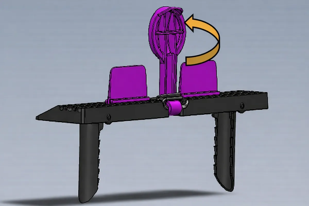 Give a slight twist to the Ball/Arm and rotate to the upright position and if preferred, lock the Hurdle (O-ring) behind the Ball/Arm for automated reset.